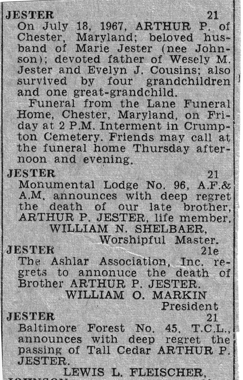 On the 21st of July 1967, the Baltimore Sun newspaper ran his death notice.